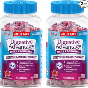 - GREAT TASTE & TRUSTWORTHY INGREDIENTS: These delicious Gluten-Free & Superfruit flavored gummies are convenient and easy for adults & kids (3 plus). Digestive Advantage products are guaranteed for freshness, purity, and labeled potency. 90 Day Supply.